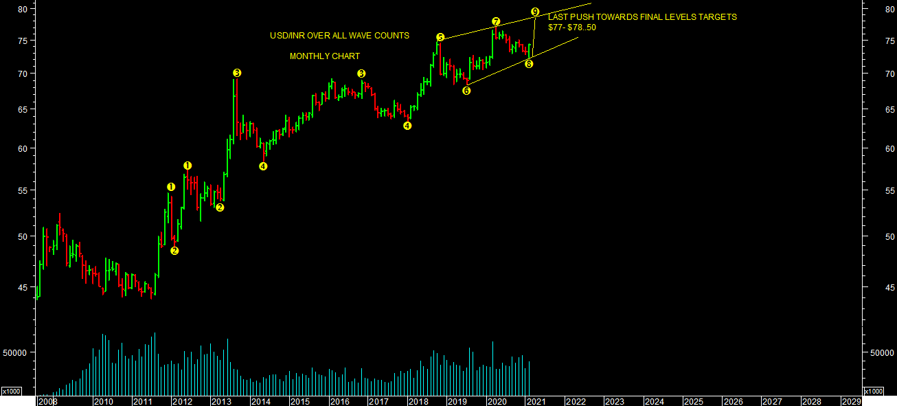 And from medium term perspectives, one can expect higher levels targets till $77/$78.50 levels till it holds above $72.30 levels. It will be last & final push of USD/INR from overall wave counts perspectives as per chart attached.