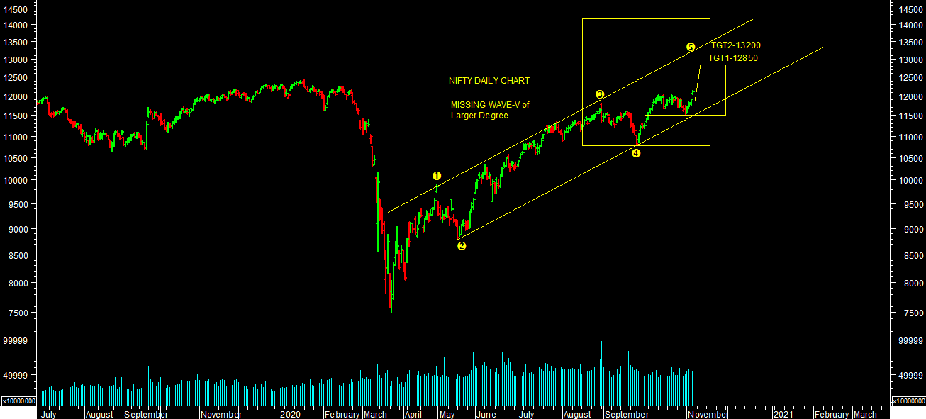 I thought as wave-B pull back rally after Covid fall of March 2019. But from lower levels we have seen sharp rebound in market & we have also closed above 11800 levels on nifty so it's now clear as missing wave-V of previous Bull market from lower levels from overall wave counts perspectives.