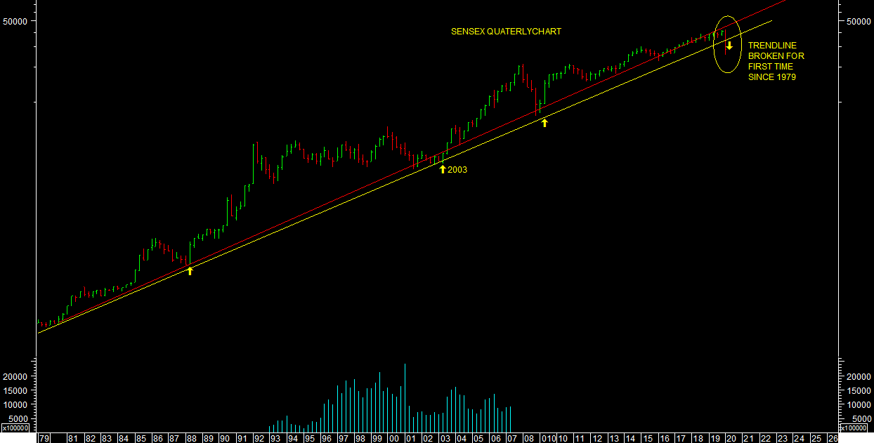 We have also broken trend line of sensex started from 1978 as per chart other attached but I am not taking case of end of Indian equity bull market started from 1978 levels so far as per alternate scenario as per chart attached & not want to be too bearish unless we break 6300 levels on nifty.